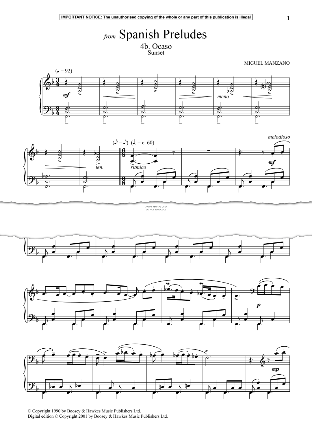 Ocaso (Sunset) from Spanish Preludes - Noten für Klavier Miguel Manzano