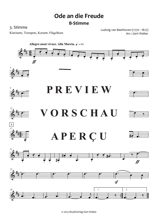 3.Stimme in B, z.B. Klarinette, Trompete, Kornett, Flügelhorn, Tenor-Saxophon, Bassklarinette