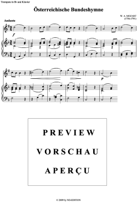 Österreichische Bundeshymne - Noten für Trompete + Klavier W. A. Mozart