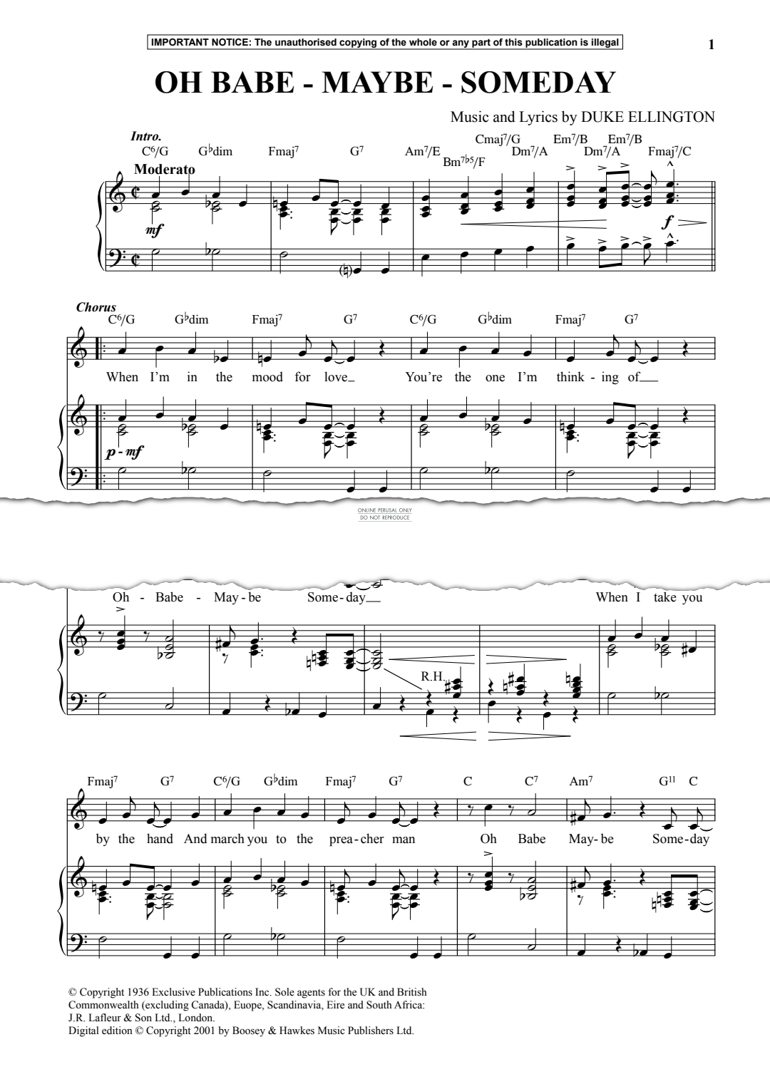 Oh Babe Maybe Someday - Noten für Gesang, Klavier Duke Ellington