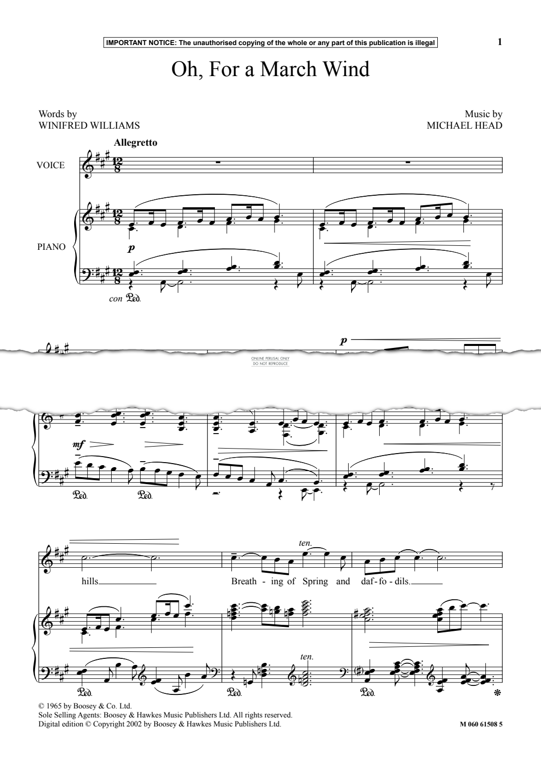 Oh, For A March Wind - Noten für Gesang, Klavier Michael Head