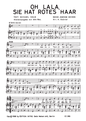 Oh lala, sie hat rotes Haar - Noten für Klavier und Gesang Erik Silvester