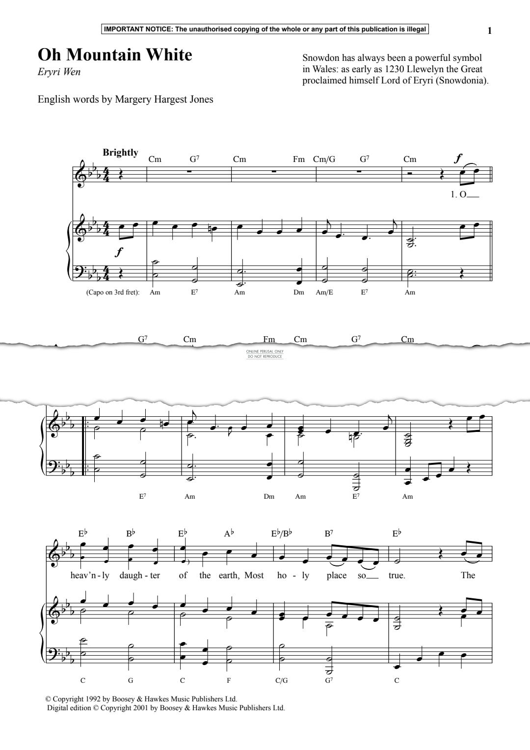 Oh Mountain White - Noten für Gesang, Klavier Traditional