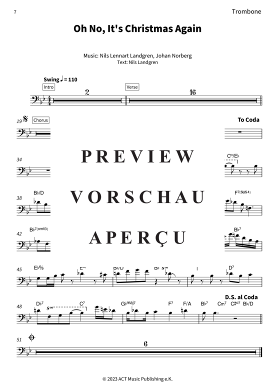 Dieses Notenheft enthält die Originalnoten von Nils Landgren zum Weihnachtslied "Oh No, It´s Christmas Again" für Trio. Die Partitur besteht aus Gesangsstimme, Posaune und Gitarrenbegleitung. Mittlerer Schwierigkeitsgrad in B-Dur mit Liedtext.