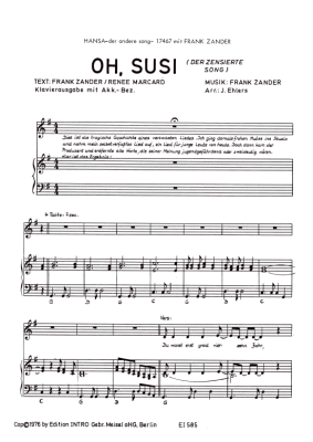 Oh Susi - Noten für Klavier und Gesang Frank Zander