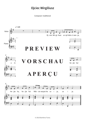 Dieses Werk enthält die Originalnoten des polnischen Kinderlieds "Ojciec Wirgiliusz", einfach arrangiert in G-Dur für Klavier und Gesang.