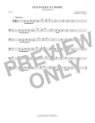 Old Folks At Home (Swanee River) - Noten für Violoncello Stephen C. Foster