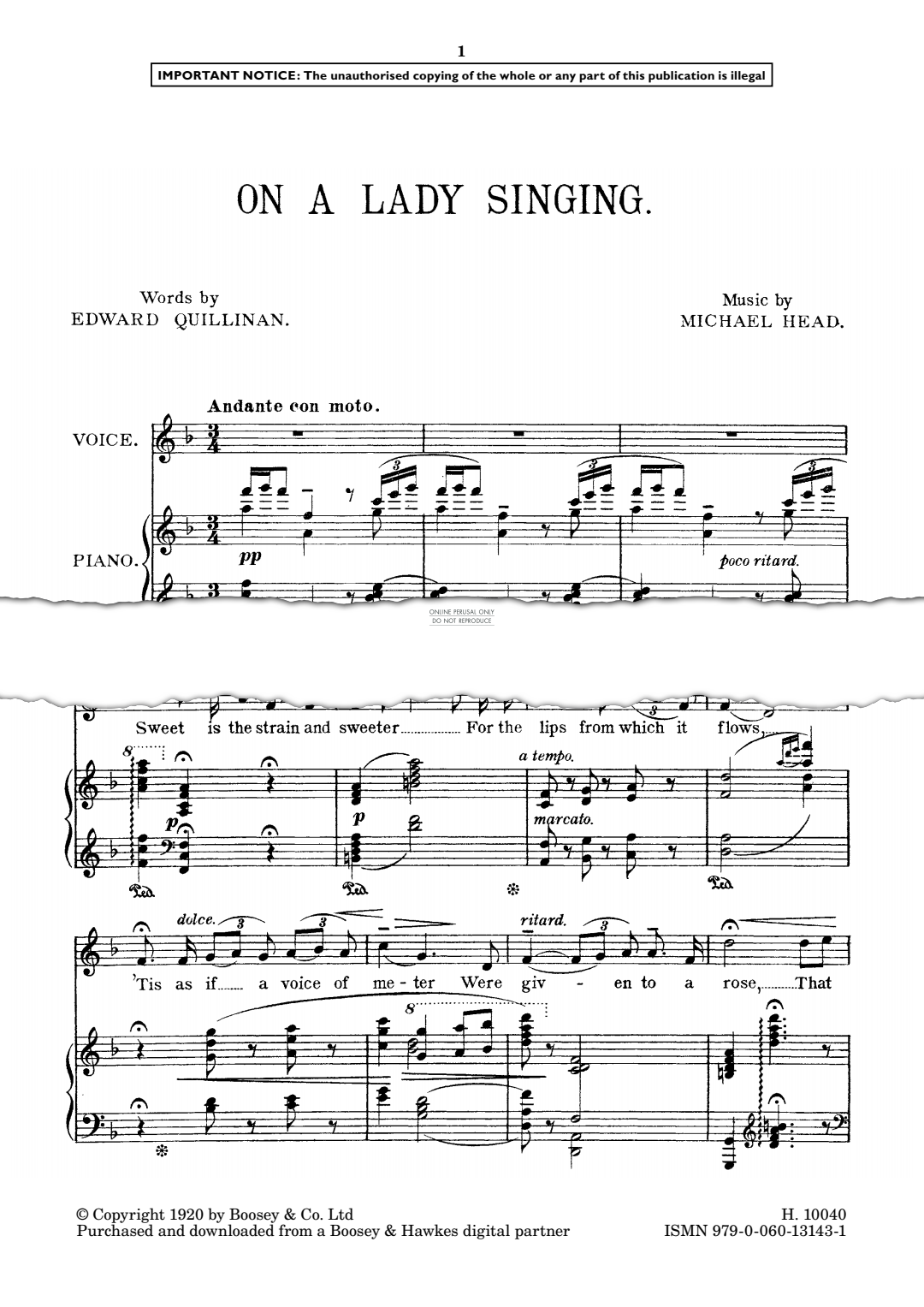 On a lady singing - Noten für Gesang, Klavier Michael Head