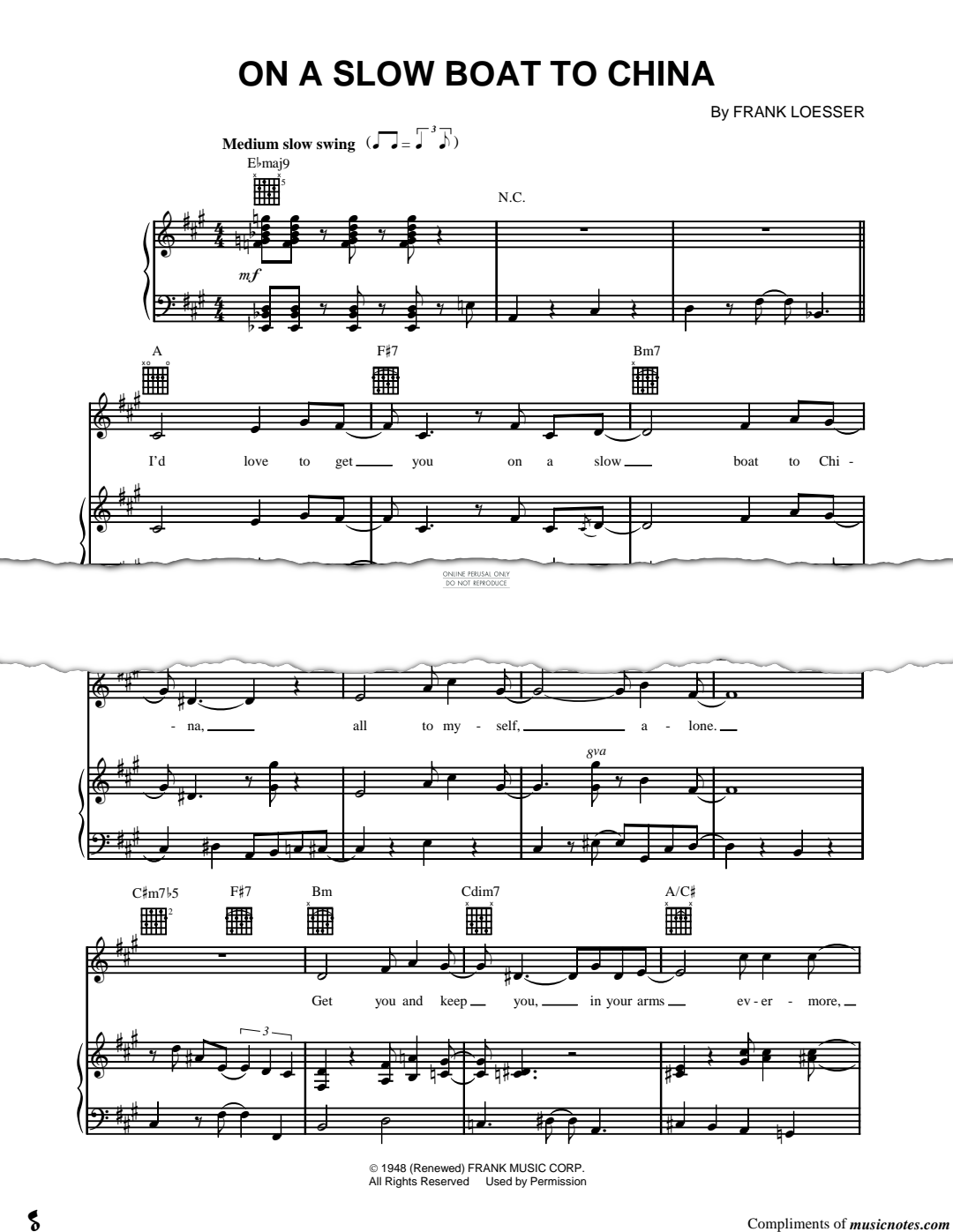 On A Slow Boat To China - Noten für Gesang, Gitarre, Klavier Frank Loesser