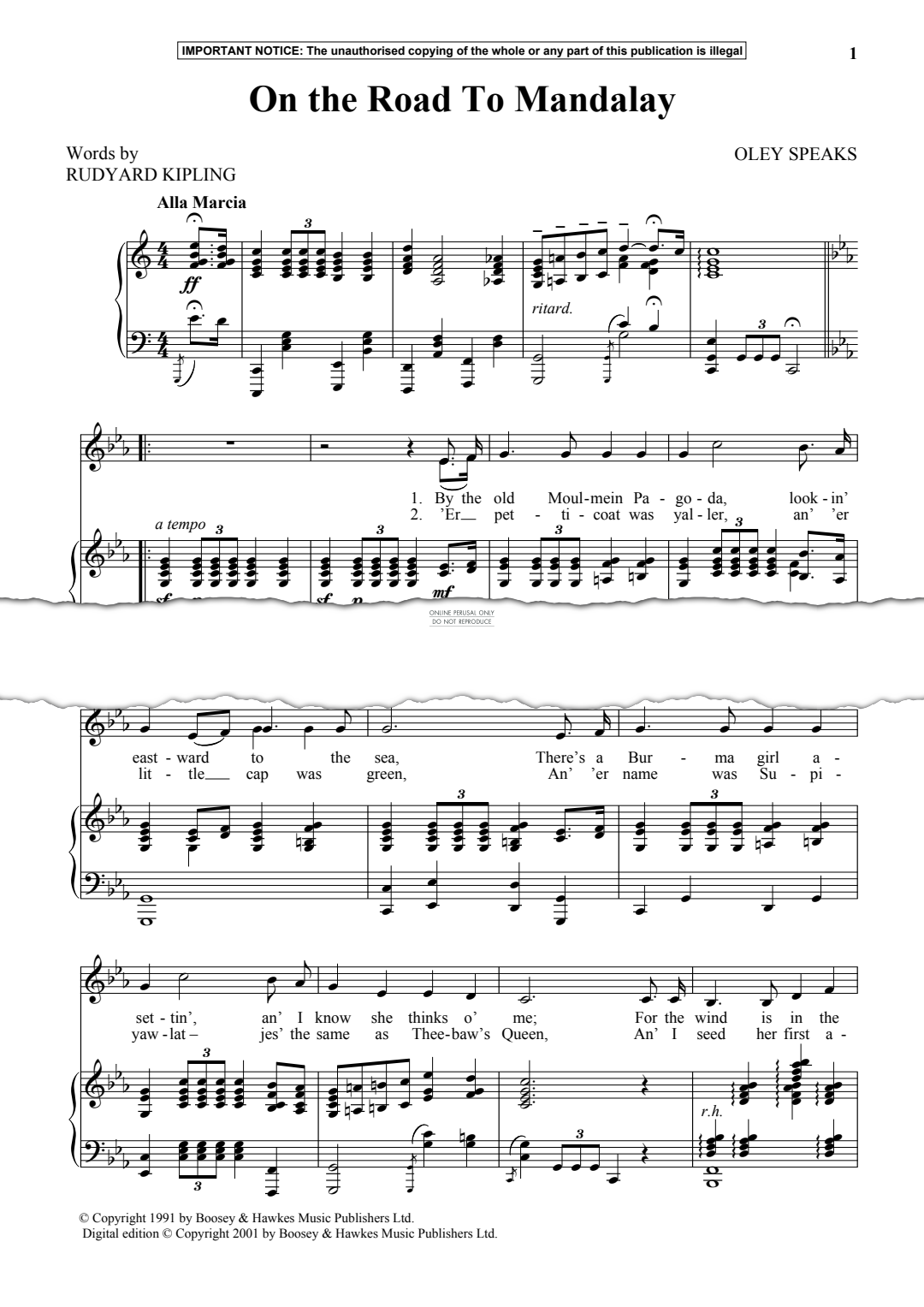 On The Road To Mandalay - Noten für Gesang, Klavier Oley Speaks