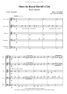 Once In Royal David´s City - Noten für Blechbläserquintett Henry J. Gauntlett
