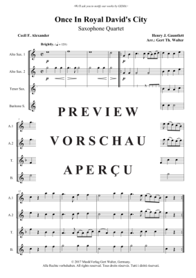Once In Royal David´s City - Noten für Saxophon Quartett Henry J. Gauntlett