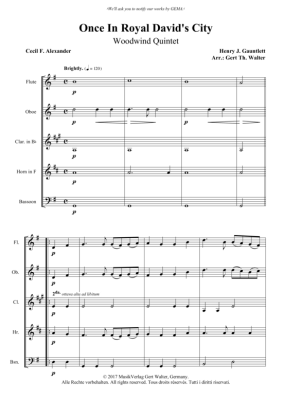 Once In Royal David´s City - Noten für Holzbläserquintett Henry J. Gauntlett