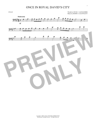 Once In Royal David's City - Noten für Violoncello Cecil F. Alexander
