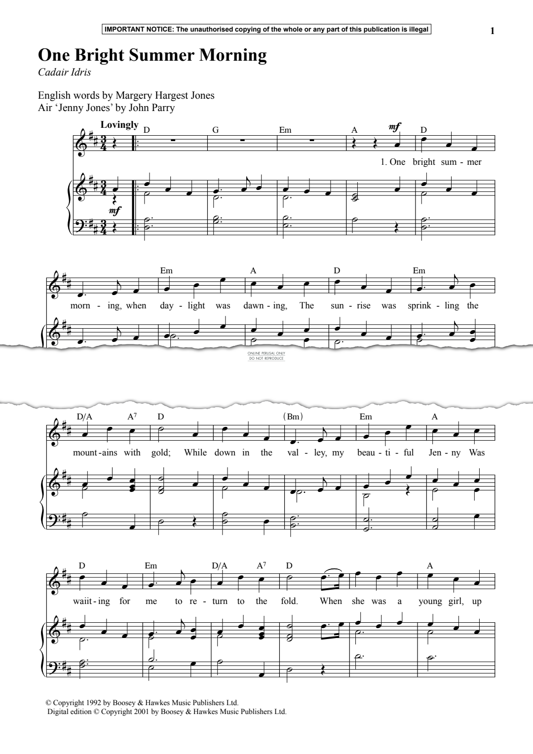 One Bright Summer Morning - Noten für Gesang, Klavier John Parry