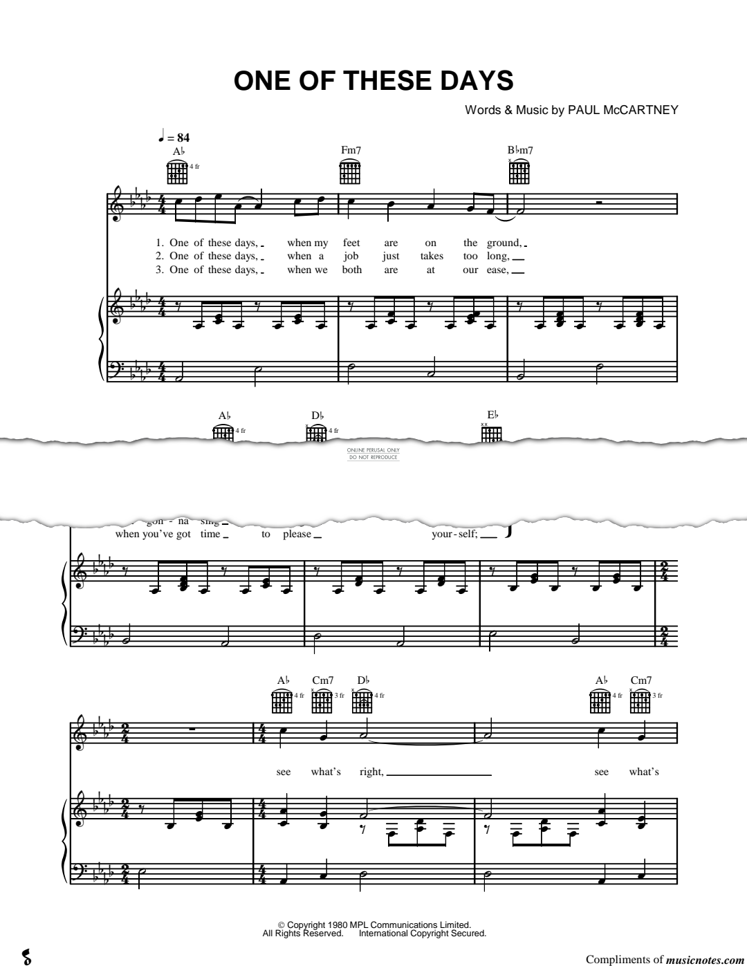 One Of These Days - Noten für Gesang, Gitarre, Klavier Paul McCartney