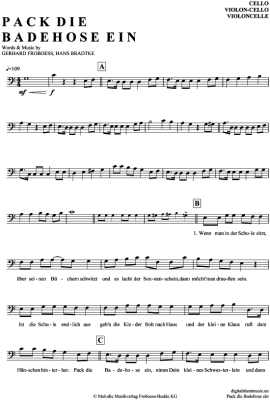Pack die Badehose ein - Noten für Violon-Cello Conni Froboess