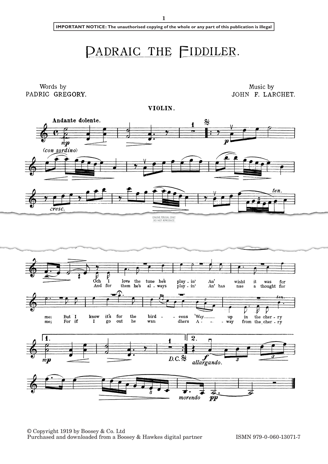 Padraic The Fiddiler - Noten für Violine John F. Larchet