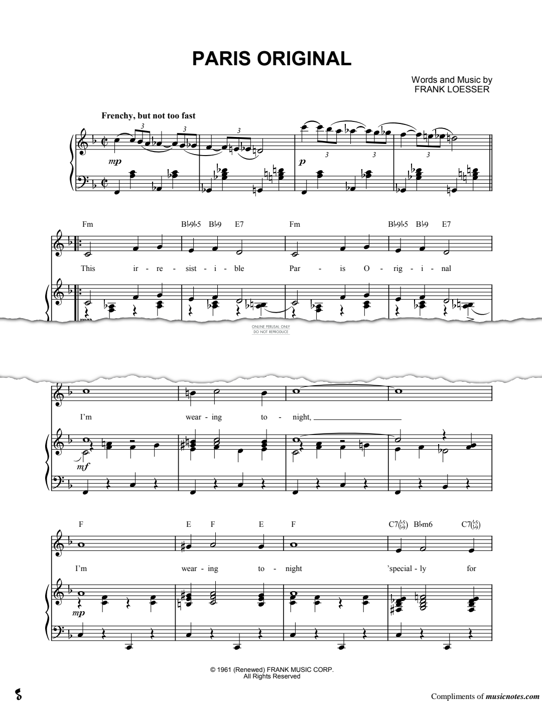 Paris Original (from 'How To Succeed In Business Without Really Trying') - Noten für Gesang, Gitarre, Klavier Frank Loesser