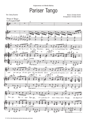 Pariser Tango - Noten für Klavier und Gesang Mireille Mathieu