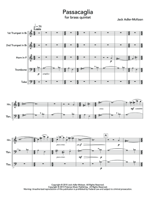 Passacaglia - Noten fĂŒr BlechblĂ€ser Quintett Jack Adler-Mckean
