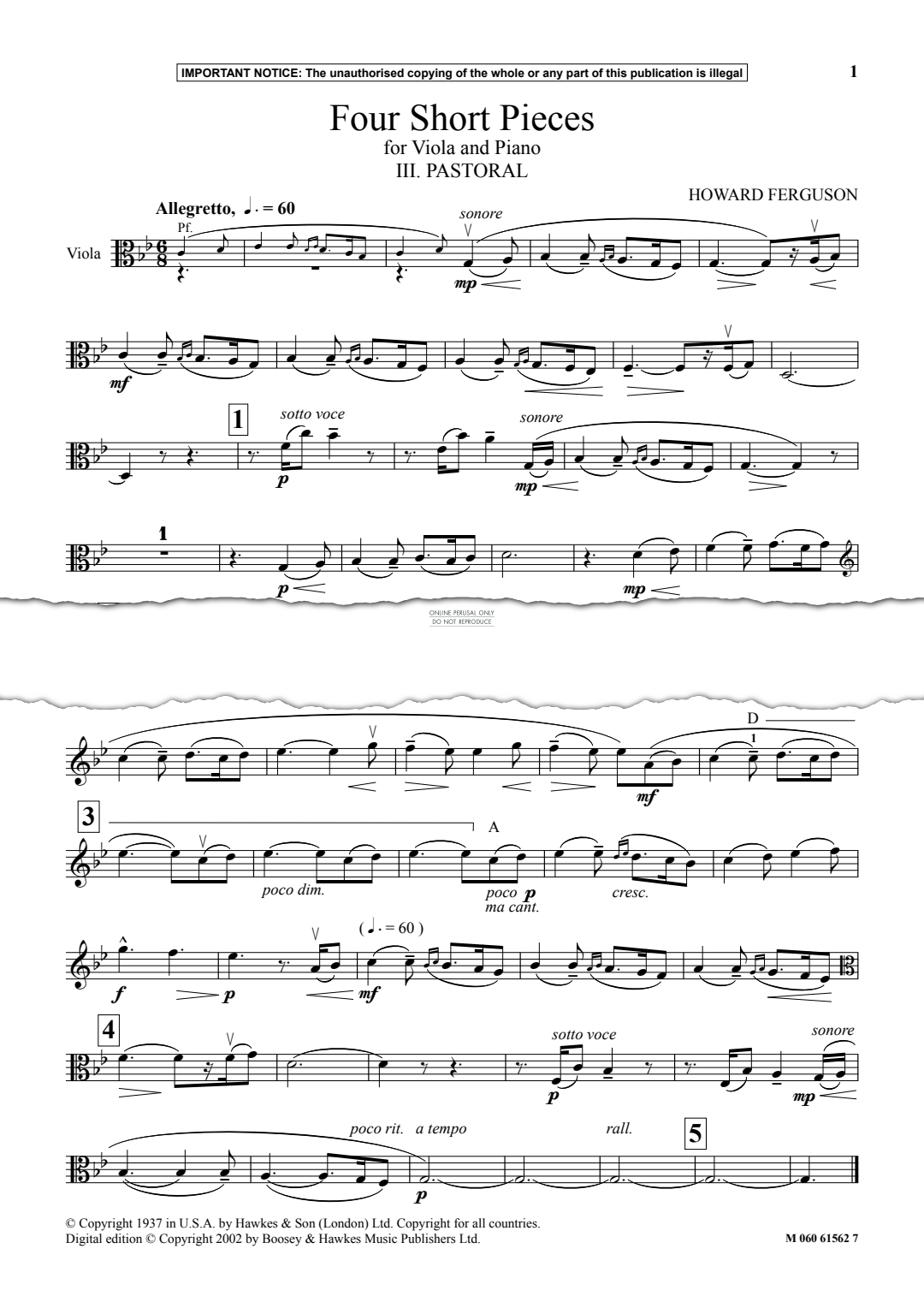 Pastoral (from 'Four Short Pieces') - Noten für Klavier, Viola Howard Ferguson