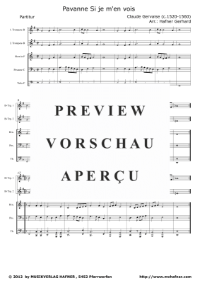 Pavane - Si je m´en vois - Noten für Blechbläser Quintett Claude Gervaise (c.1520-1560)