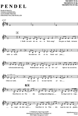 Pendel - Noten für Trompete in B Yvonne Catterfeld