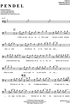 Pendel - Noten für Violon-Cello Yvonne Catterfeld