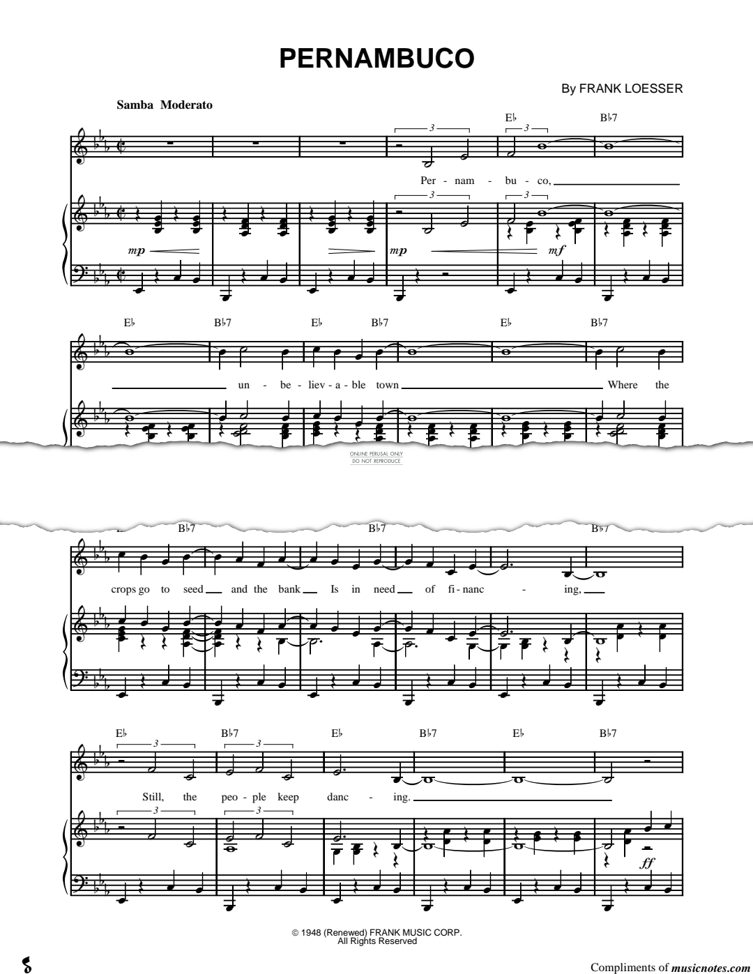 Pernambuco (from 'Where's Charley?') - Noten für Gesang, Gitarre, Klavier Frank Loesser