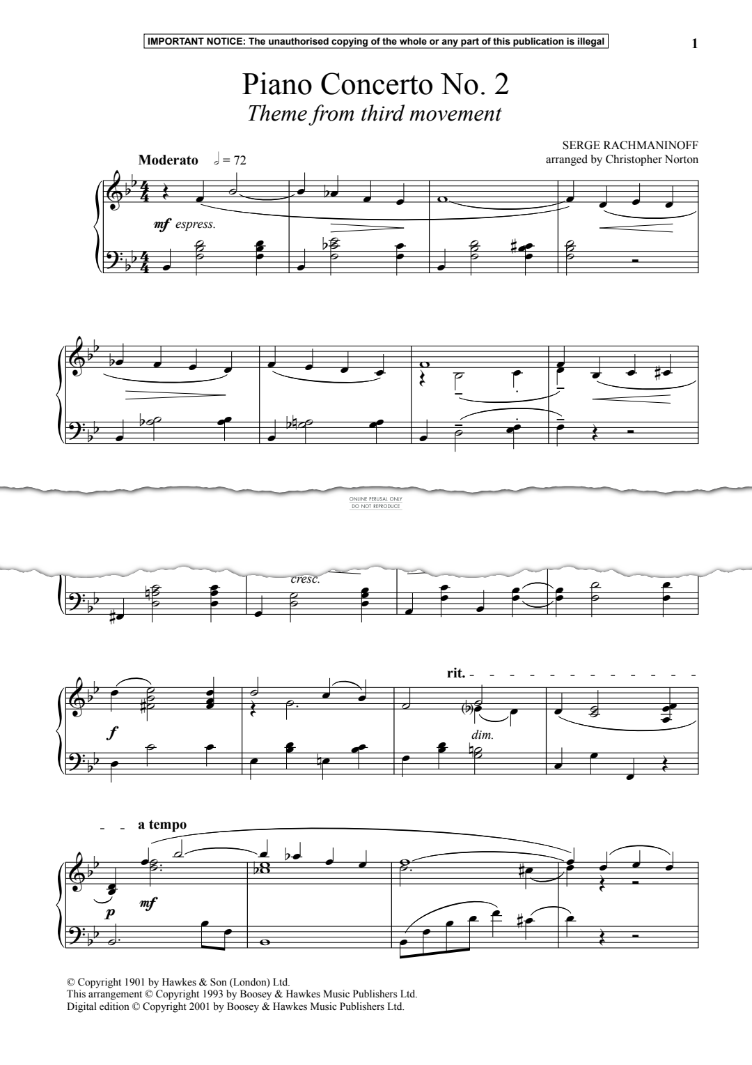Piano Concerto No. 2 (3rd Movement Theme) - Noten für Klavier Sergei Rachmaninoff