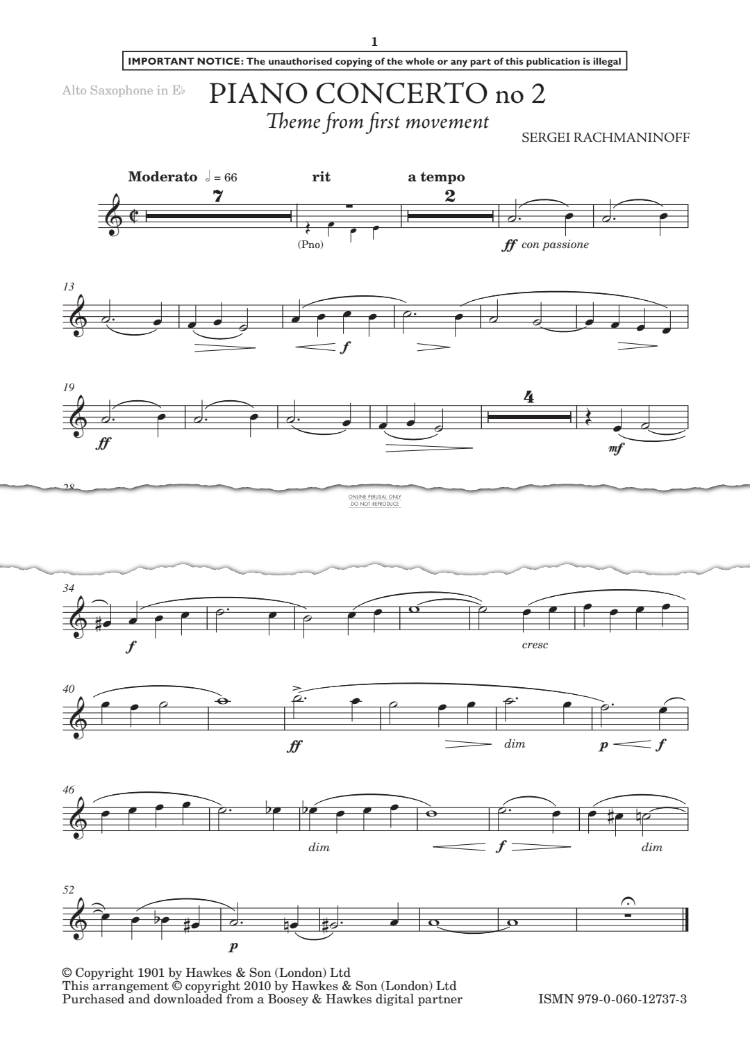 Piano Concerto No. 2 - Theme from First Movement - Noten für Klavier, Saxophon Sergei Rachmaninoff