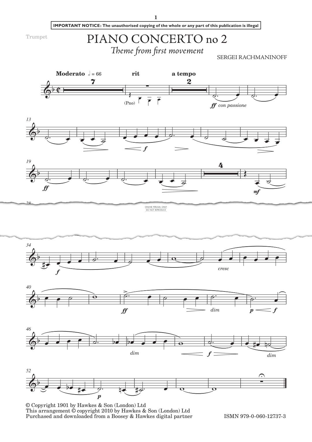 Piano Concerto No. 2 - Theme from First Movement - Noten für Klavier, Trompete Sergei Rachmaninoff