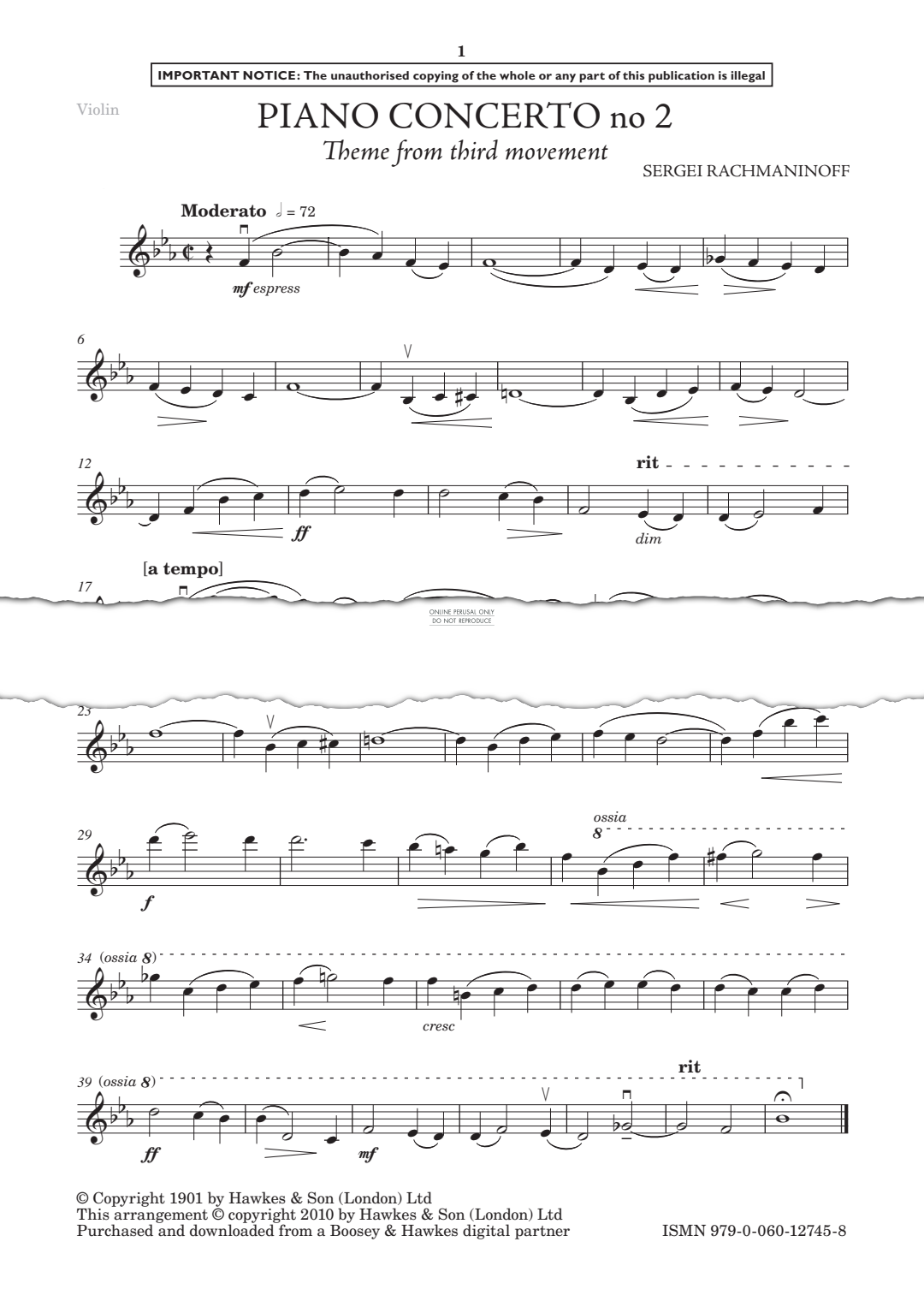 Piano Concerto No. 2 - Theme from Third Movement - Noten für Klavier, Violine Sergei Rachmaninoff