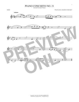Piano Concerto No. 21 In C Major ("Elvira Madigan"), Second Movement Excerpt - Noten für Horn Wolfgang Amadeus Mozart