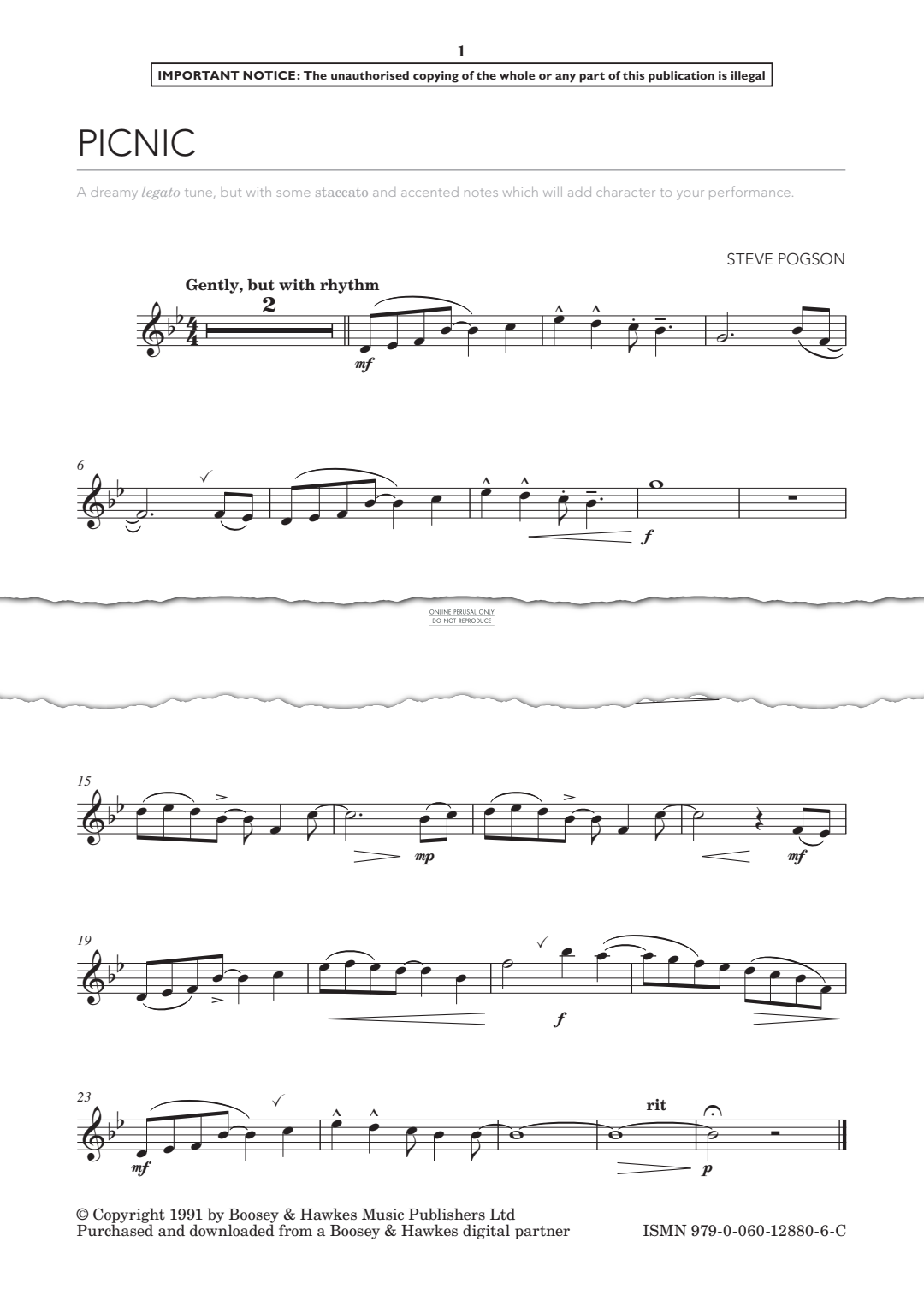 Picnic - Noten für Flöte, Klavier Steve Pogson