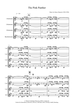 Pink Panther - Noten für Klarinetten Quartett 3x Klarinette in B und Bass Klarinette Henry Mancini