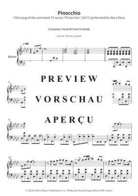 Pinocchio - Title song of the animated TV series Pinocchio (1977) - Noten für performed by Mary Roos Klavier Solo Karel Richard Svoboda