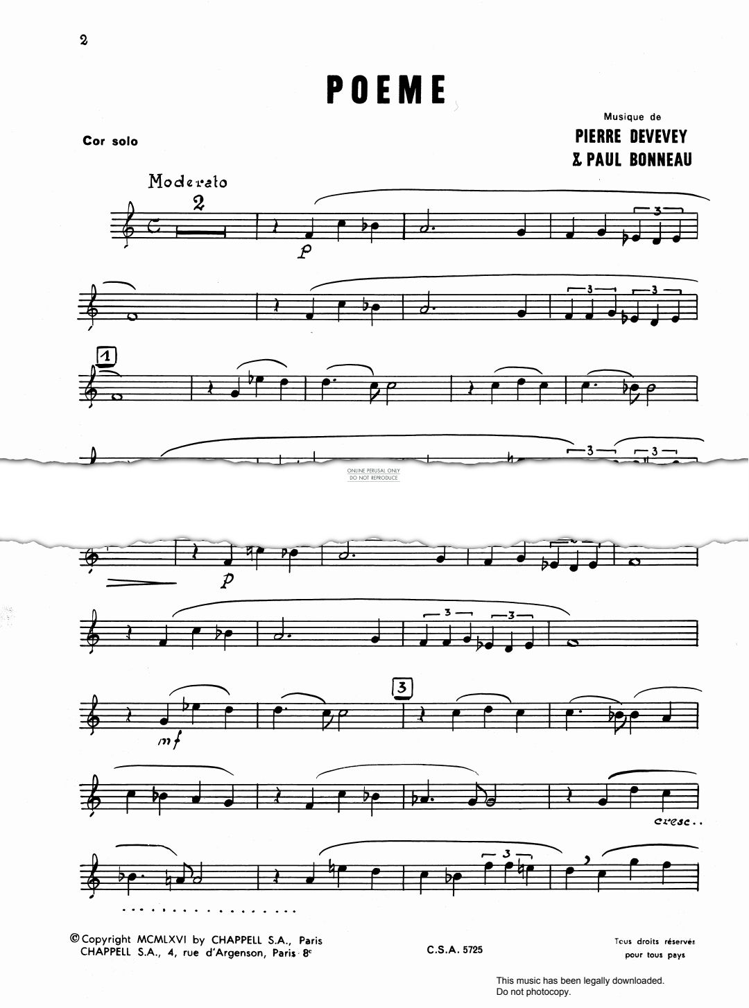 Poeme - Noten für Horn, Klavier Pierre Devevey