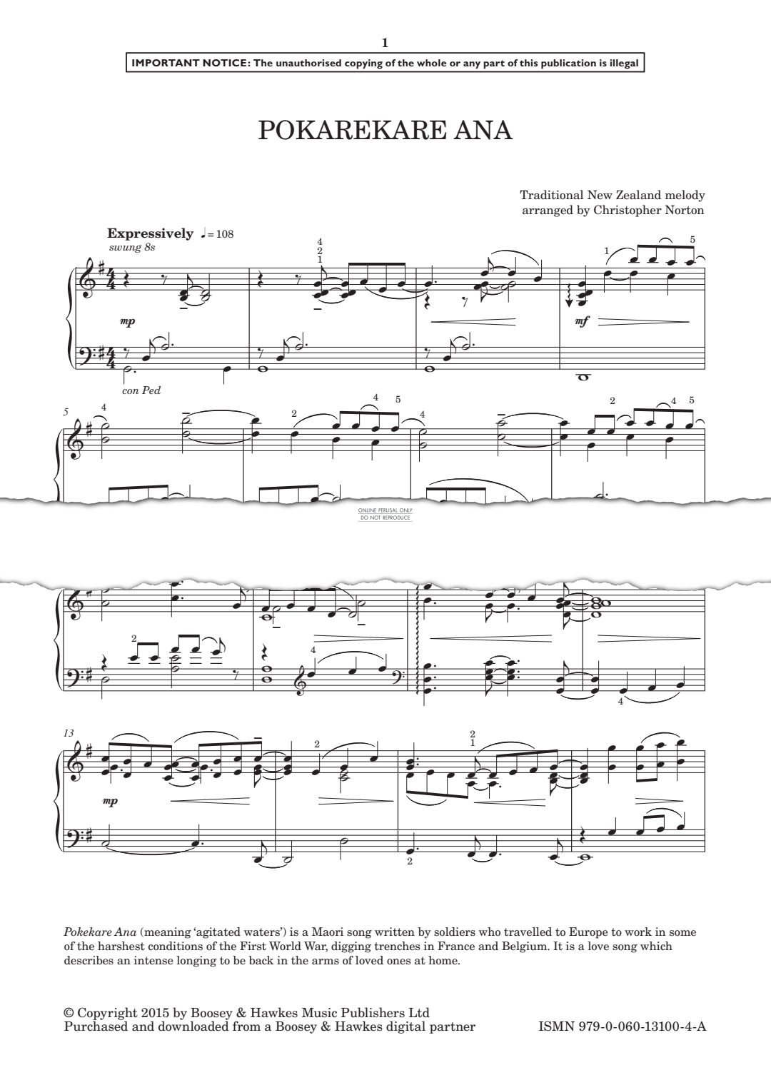 Pokarekare Ana - Noten für Klavier New Zealand Traditional