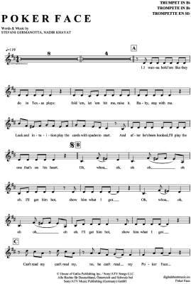 Poker Face - Noten für Trompete in B Lady GaGa