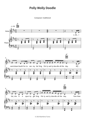Polly Wolly Doodle - Noten für Gesang + Klavier, Gitarre Lars Opfermann