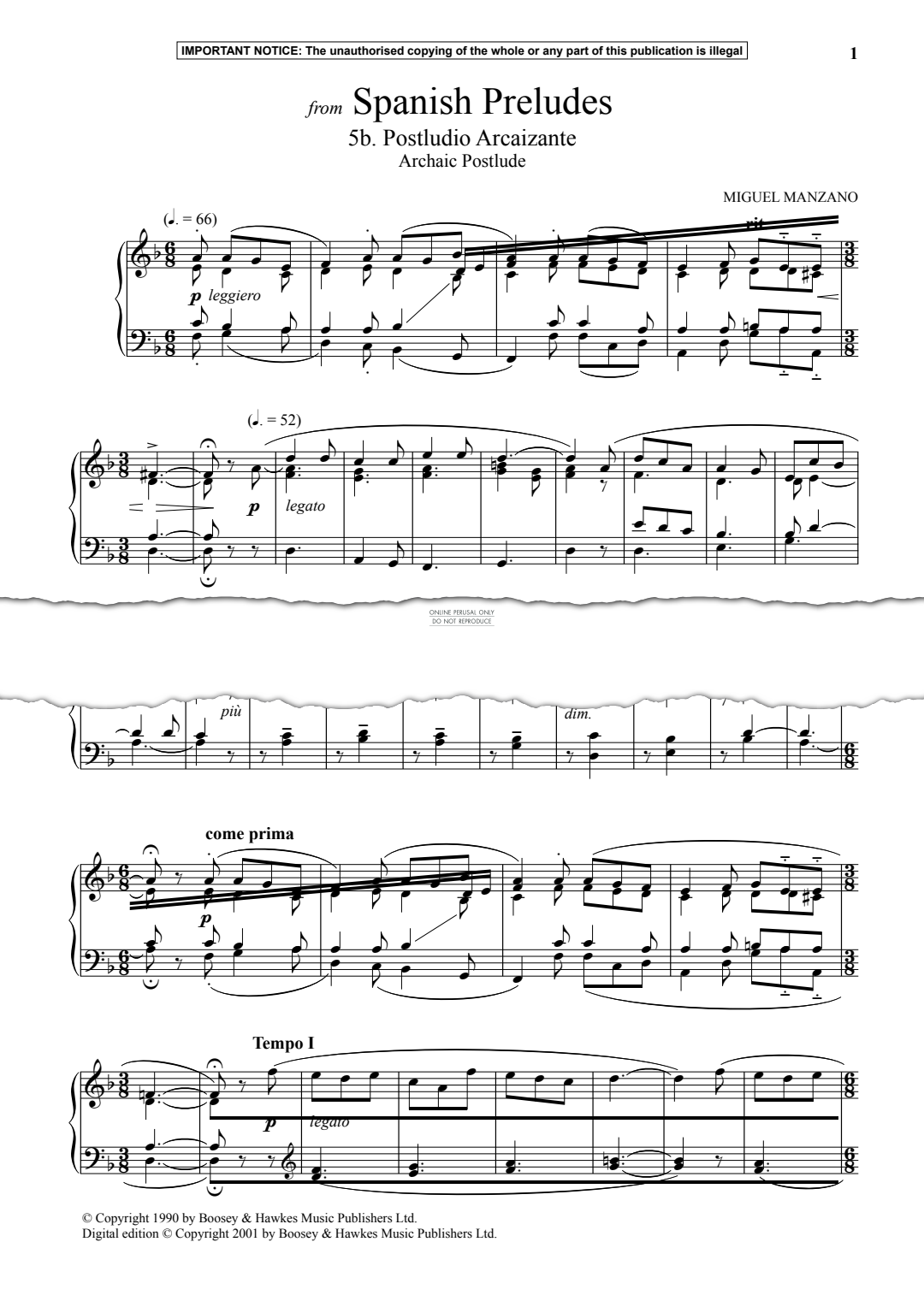 Postludio Arcaizante (Archaic Postlude) from Spanish Preludes - Noten für Klavier Miguel Manzano