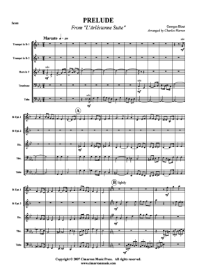 Prelude aus L´Arlesienne Suite - Noten für Blechbläserquintett Georges Bizet