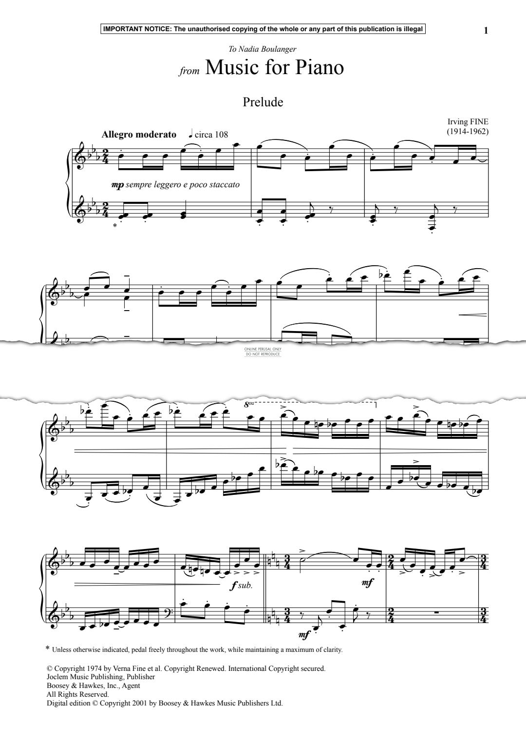 Prelude from Music for Piano - Noten für Klavier Irving Fine