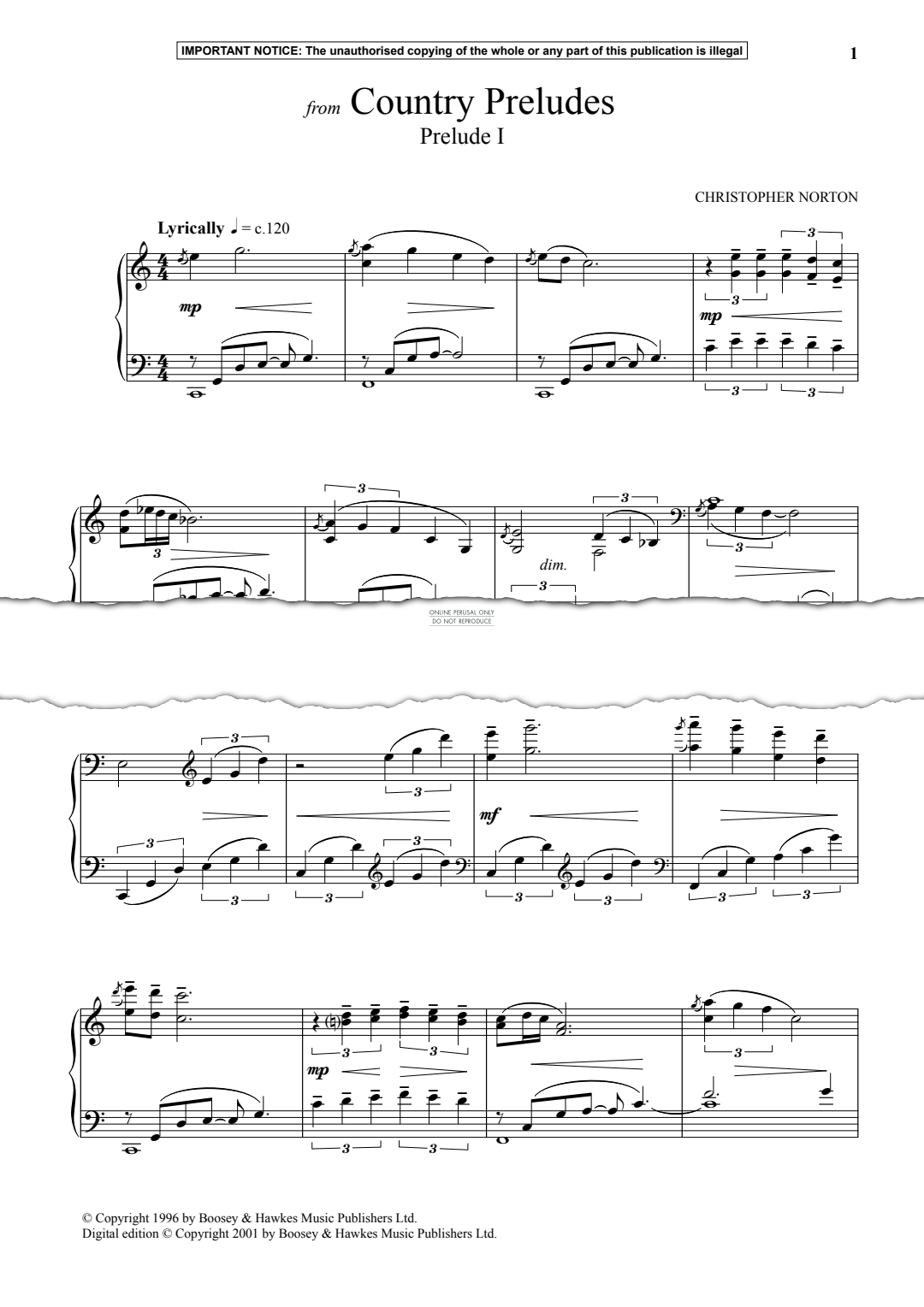 Prelude I from Country Preludes - Noten für Klavier Christopher Norton
