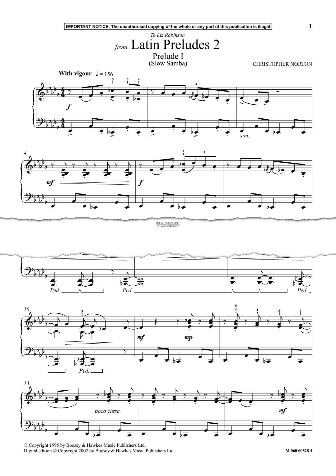 Prelude I (Slow Samba) from Latin Preludes - Noten für Klavier Christopher Norton