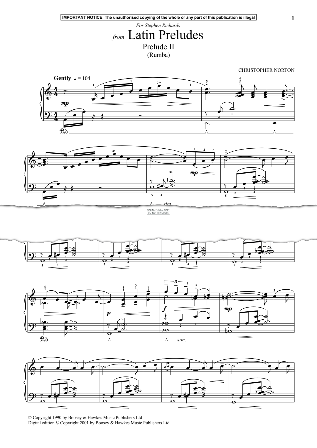 Prelude II (Rumba) from Latin Preludes - Noten für Klavier Christopher Norton