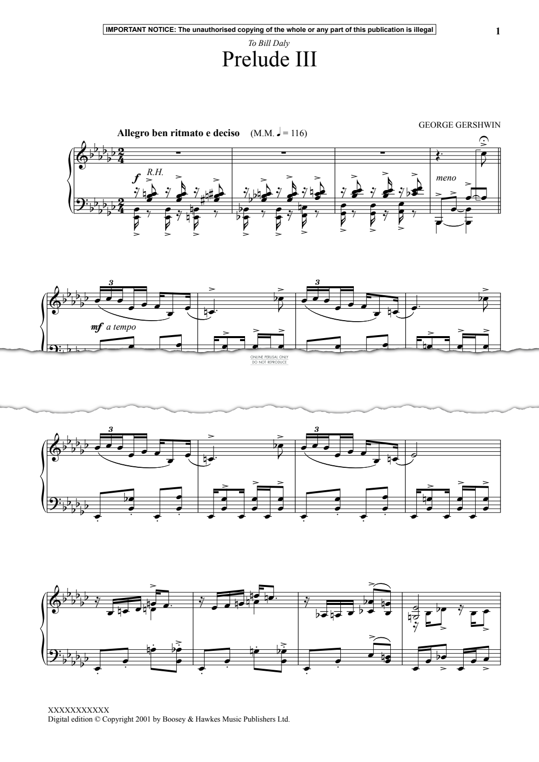 Prelude III - Noten für Klavier George Gershwin