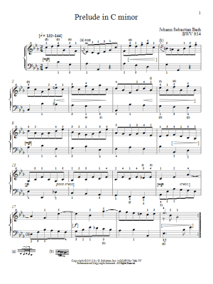 Prelude In C Minor, BMV 934 - Noten für Klavier Johann Sebastian Bach